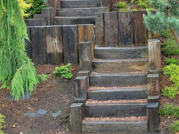 装饰性景观场景:如庭院小品、花池边框、次要步道等,无需承担过重荷载,旧枕木的复古质感可成为园林的亮点元素;